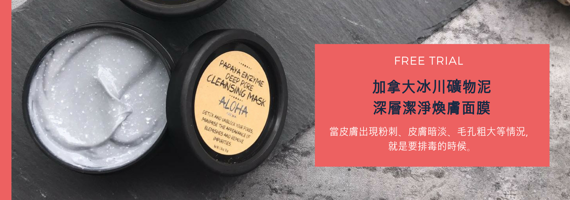 加拿大冰川礦物泥- 來自加拿大的冰川河泥, 可吸附皮膚及毛孔中的黑頭, 粉刺及多餘油脂; 有效清除老廢角質, 令肌膚更透亮, 有光澤; 含多種礦物成份, 幫助肌膚抗氧化, 收歛毛孔, 令肌膚更細緻柔滑